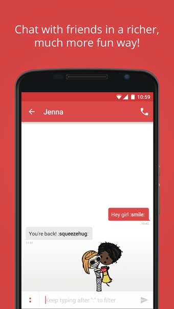 在MimeChat軟件中你可以定制自己角色的外形,發(fā)型、膚色、服飾都可以,簡單線條勾勒出的形象也是很可愛。其最大的特色是用兩個卡通角色代表雙方,最贊的是這兩個角色是可以動的哦~。如果覺得互發(fā)表情斗圖都無法滿足溝通的欲望,一定來試試本軟件。【特點】