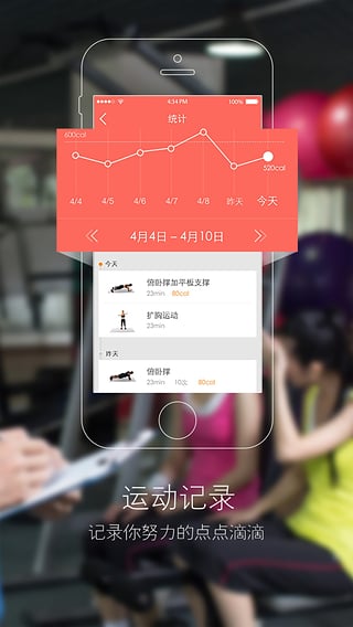 自動生成記錄:自動記錄時間和消耗卡路里,周期性曲線圖讓運動量一目了然;