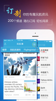 1.訂制——你的專屬民航資訊,近200個(gè)頻道,隨心訂閱,輕松閱讀