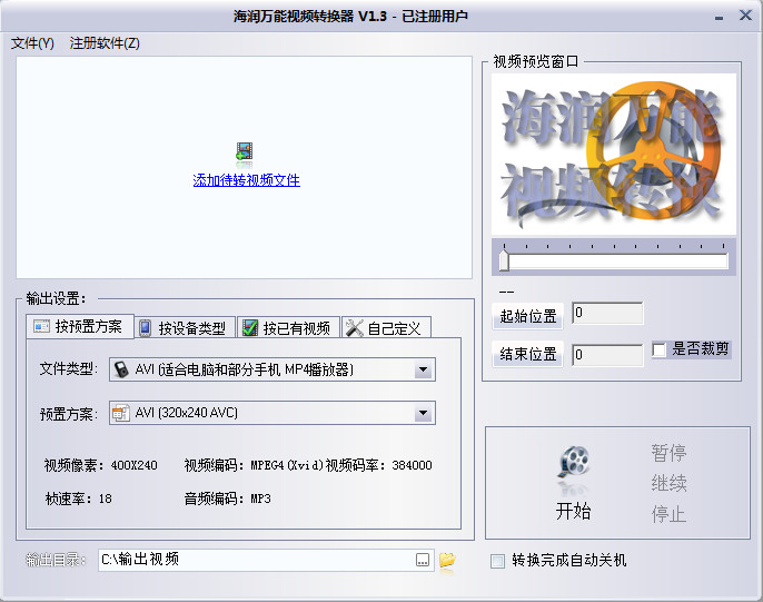 3、再打開“海潤萬能視頻轉(zhuǎn)換器V1.3.exe”文件,運行軟件。會顯示已注冊用戶。