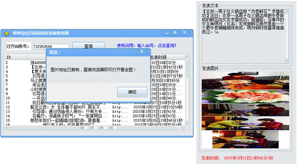 打開工具輸入QQ號(hào)即可查看該QQ號(hào)空間時(shí)光軸,注意如果是權(quán)限空間的話是無法查看的!