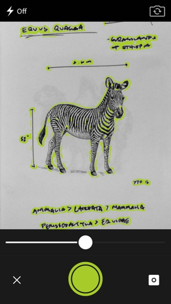 應(yīng)用打開(kāi)即是拍照頁(yè)面,會(huì)自動(dòng)提取畫面中的線條,你可以手動(dòng)調(diào)整精確度,最終它為你生成一張 png 圖片。