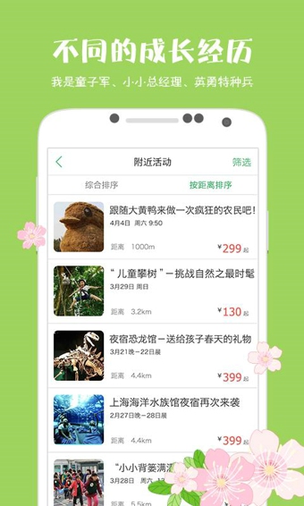 按照您的孩子年齡、活動(dòng)時(shí)長(zhǎng)、舉辦時(shí)間、距離遠(yuǎn)近,瞬間找到適合的項(xiàng)目;