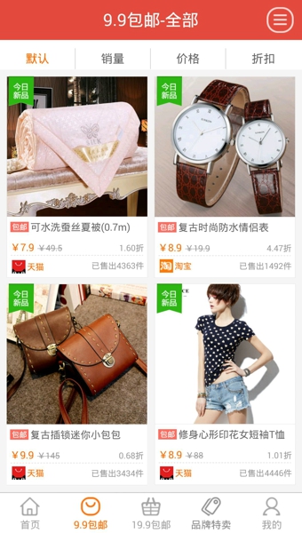 一折特賣是一個(gè)專門提供限時(shí)促銷信息的手機(jī)APP應(yīng)用,每天匯集淘寶.天貓超值商品,根據(jù)店家信譽(yù),商品質(zhì)量,促銷價(jià)格等進(jìn)行衡量,最終精選出數(shù)萬件商品供用戶選擇,每天多次實(shí)時(shí)更新特價(jià)商品信息,讓您第一時(shí)間就看到正在促銷特賣的商品,隨時(shí)享受超低價(jià)格,本APP有三大特色。1:促銷商品最全