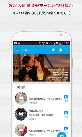 創(chuàng)建自己的話題,邀請(qǐng)好友一起玩視頻接龍游戲,體驗(yàn)更刺激有趣的視頻互動(dòng) 方式!