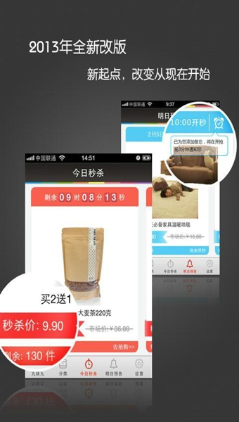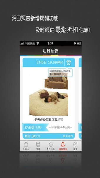 支持明日預(yù)告,秒殺多款特價(jià)寶貝定時(shí)搶購,每天多款寶貝8點(diǎn),12點(diǎn),18點(diǎn)準(zhǔn)時(shí)開搶;