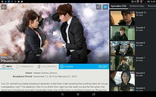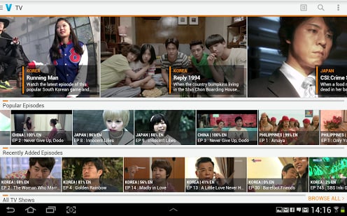 可以觀賞到高清的電視節(jié)目、電影、音樂電影還有其他優(yōu)質(zhì)內(nèi)容,這些內(nèi)容都已經(jīng)由viki的社群粉絲翻譯成超過150種語言。在viki你可以看到最受歡迎的各類節(jié)目,諸如熱門韓劇、日本動(dòng)漫、美國(guó)動(dòng)畫、NBC環(huán)球節(jié)目、BBC節(jié)目、歷史頻道、A&E電視節(jié)目、Bravo&Bio電視節(jié)目,以及來自寶來塢、拉丁美洲和非洲的電影,甚至是知名公司出品的電影,以及諸如加納、圣德西電影節(jié)的參展電影。