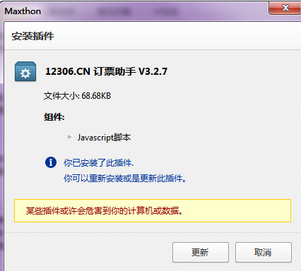木魚12306訂票助手目前支持Chrome(含RC、Beta以及每夜版),F(xiàn)irefox(需要Scriptish擴展支持,使用了新的API所以GreaseMonkey不支持),遨游3(需要使用高速模式,不過沒用的話也沒關(guān)系,腳本會提示你用高速模式的),獵豹瀏覽器。