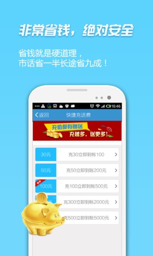 移動省錢寶安卓版是專為手機用戶打造一款免費的聊天通訊軟件,用戶只需注冊就能夠得到國內(nèi)20分鐘的免費通話試用,以后就可以用移動、聯(lián)通以及電信這三網(wǎng)打全球各地的電話,不需要任何的話費。