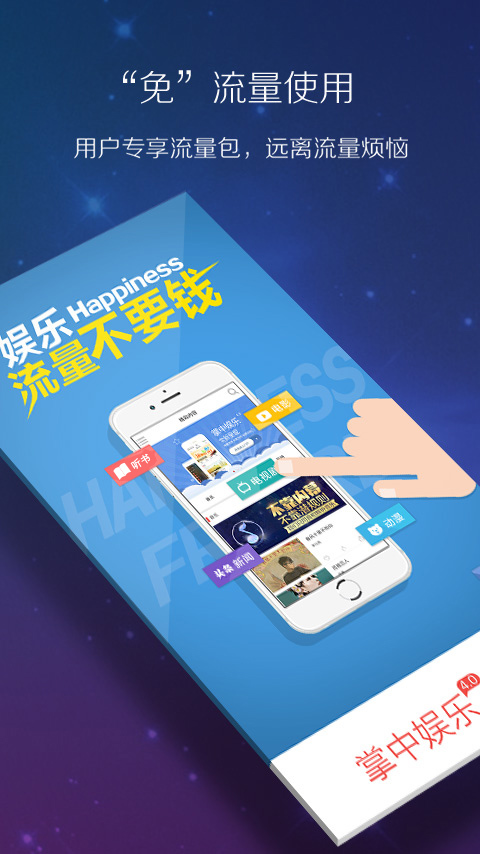 掌中娛樂VIP用戶專享定向流量包,真正開啟移動無線生活,遠離流量困擾。
