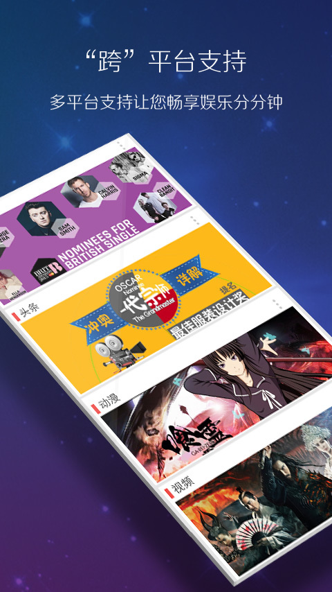 資源豐富掌中娛樂涵蓋音樂、電臺、聽書、視頻、動漫、電影、微電影、應(yīng)用推薦,只需一個應(yīng)用,就能享用全部娛樂內(nèi)容。