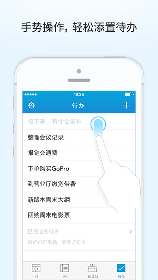 下拉新建,右滑標(biāo)為完成,長按調(diào)整順序,輕松快捷的手勢操作