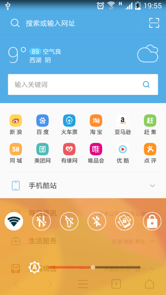 3.自帶全局的快捷設(shè)置菜單,可以在任何時(shí)候從屏幕下方向上滑出。包括wifi、數(shù)據(jù)流量GPRS、藍(lán)牙、旋屏以及屏幕亮度等設(shè)置。