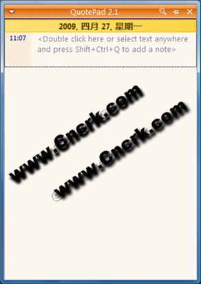 QuotePad是一款記筆記的小工具, 用戶只要在網(wǎng)頁(yè)上選擇一段文字, 在按熱鍵Shift+Ctrl+Q, 選擇的文字就會(huì)被記錄下來(lái). 更方便的是, 網(wǎng)頁(yè)所在的網(wǎng)址, 也會(huì)被自動(dòng)加注到便簽中