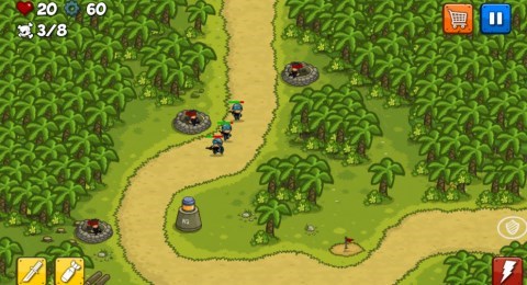 而且除了固定的炮臺類設(shè)施外,玩家還可以選擇有冷卻時間以及次數(shù)限制的額外道具或兵力來進(jìn)行戰(zhàn)斗。游戲里提供給玩家包括多種類型的導(dǎo)彈以及士兵,玩家可以自行選擇合適的時機(jī)來讓它們派上用場。這些道具有些需要購買,而另一些則只需要結(jié)束冷卻時間就能夠再次使用,這些道具的加入,讓游戲的玩法多了其他選擇。而平衡問題也是游戲?qū)τ诘谰咴O(shè)定的一大考量,在平衡性上,道具的加入可以起到扭轉(zhuǎn)戰(zhàn)局的作用,但是在大部分時間中,游戲還是交給了炮臺來掌控全局,所以道具很關(guān)鍵,但并不會影響游戲的平衡。