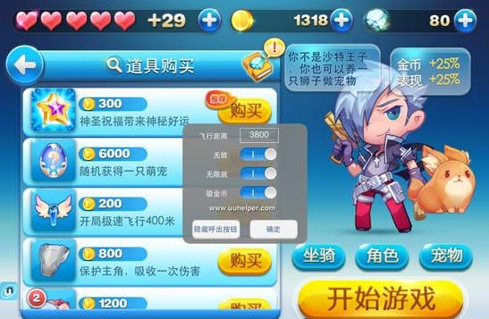 1、進(jìn)入游戲,點(diǎn)擊左下角的【UU助手】圖標(biāo),設(shè)置飛行距離【3800】,開(kāi)啟無(wú)敵、無(wú)限跳、吸金幣等模式;