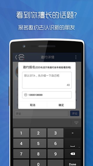 1、創(chuàng)建邀約時(shí)可以預(yù)留聯(lián)系電話了,再也不怕互相找不到人啦。2、修復(fù)了在一些極端情況下通過引導(dǎo)頁跳轉(zhuǎn)到邀約時(shí)應(yīng)用崩潰的問題。