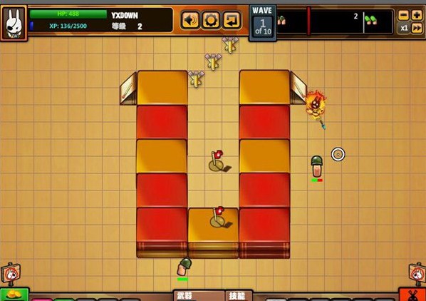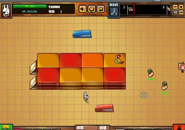 兔子旗飄揚2無敵版游戲中玩家要做的便是不讓手指怪物靠近兔子的火柴旗,而防守的方式就是在手指怪物走近之時將其擊斃,不過由于敵人數(shù)量眾多靠一人之力依然非常有限,所以游戲中也提供了類似塔防的建設元素,最初玩家可使用路障讓敵人繞遠路來爭取時間,隨著游戲關卡的進展,玩家漸漸的會掌握更多的建設項目,其中有著許多是具有各種類型攻擊力的建筑,玩家需要好好對其進行利用,這也是過關的關鍵。另外玩家在殺敵賺取利潤之后還可升級武器跟購買軍火道具,在游戲的后期情況將會非常復雜,需要考慮的方面也變得非常多