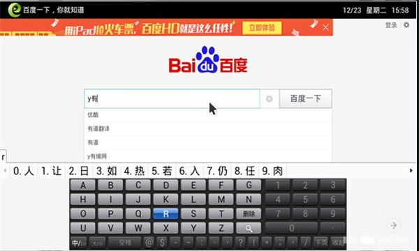 本產(chǎn)品采用與Android系統(tǒng)一致的深色調(diào)界面,默認(rèn)采用ABCDEFG順序+數(shù)字+符號全鍵盤布局,按鍵面積夠大,按鍵全鍵盤時會彈出按鍵提示,并且候選字的字體相當(dāng)大,非常容易點選。左側(cè)除了26個拼音字母外,還有退格鍵、搜索鍵;右側(cè)部分則是數(shù)字鍵;底部則是中/英文切換、空格和符號鍵的切換。這款輸入方式,免去您來回切換面板所耗費的時間,使得輸入操作更加便捷,節(jié)省輸入時間,提高輸入效率。
