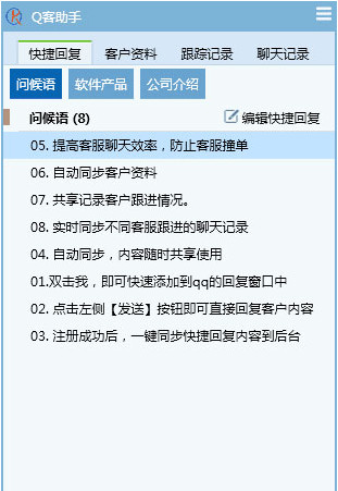 Q客助手是新一代的互聯(lián)網(wǎng)客服兼客戶CRM管理系統(tǒng),本款軟件能夠幫助用戶快速管理自己的客戶信息,讓你能夠一目了然地看到自己客戶的資料,非常方便好用!