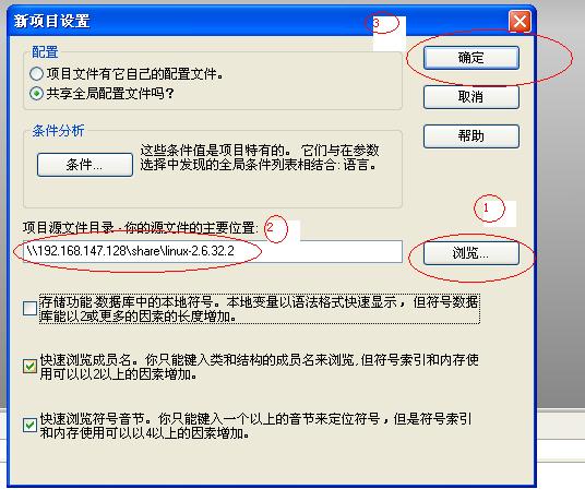 項目名稱、存放路徑設(shè)定完后,點確定,如下對話框,對應(yīng)標(biāo)號: