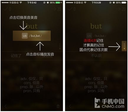 采用學(xué)習(xí)、復(fù)習(xí)兩套科學(xué)的智能算法,自動根據(jù)你的記憶效果智能調(diào)整你的單詞學(xué)習(xí)安排,固強補弱,重點突出,讓你用最少的時間掌握最多的詞匯。