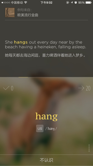 而不背單詞最有特色的一點,即其每個單詞都配有多個的例句,這些例句大多來自有聲讀物、美劇、名人演講、歐美金曲等趣味性比較強的內(nèi)容,可以讓用戶除了記住詞的拼寫以外,還能把單詞置于句子中去理解它在不同場景下的具體意思和用法,學(xué)習(xí)在每個真實的應(yīng)用場景這個詞是怎么被說出來的。當然,一般情況下要不要看例句是用戶自選的,但是如果用戶沒有做對單詞詞義的選擇題的話,就要聽完有聲例句才可以去往下一個單詞的學(xué)習(xí)了。