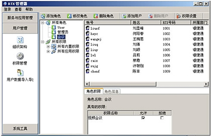 數(shù)據(jù)庫目前實現(xiàn)了雙向同步,安裝完成視頻服務端插件,就自動讀取了RTX具備會議授權用戶信息。用戶信息自動實現(xiàn)實時同步。