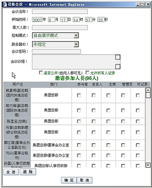 點擊會議面板的添加既可實現(xiàn)會議召集,選者人員名單,即可實現(xiàn)會議的組織和預定。