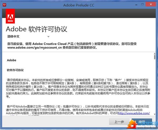 然后進行安裝Adobe Prelude CC軟件如下。選擇使用安裝。