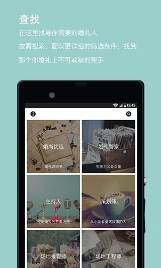 7、婚禮人職業(yè)細(xì)分到十幾種職業(yè),為新人和婚禮人的提供資源整合;
