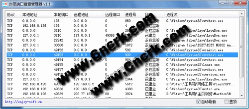 亦思端口查看管理器,可以快捷方便的查看電腦端口,及時(shí)防范病毒木馬入侵。擁有體積小,查看方便,操作簡(jiǎn)單的特點(diǎn),支持排序功能,支持XP、VISTA系統(tǒng)