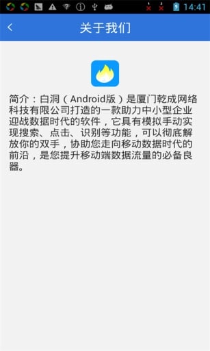 白洞是廈門乾成網(wǎng)絡(luò)科技有限公司打造的一款助力中小型企業(yè)迎戰(zhàn)數(shù)據(jù)時(shí)代的軟件,它具有模擬手動(dòng)實(shí)現(xiàn)搜索、點(diǎn)擊、識(shí)別等功能,可以徹底解放你的雙手,“洞”起來(lái),在數(shù)據(jù)的海洋里,您不再是一葉孤舟,協(xié)助您走向移動(dòng)數(shù)據(jù)時(shí)代的前沿,是您提升移動(dòng)端數(shù)據(jù)流量的必備良器。【軟件特點(diǎn)】