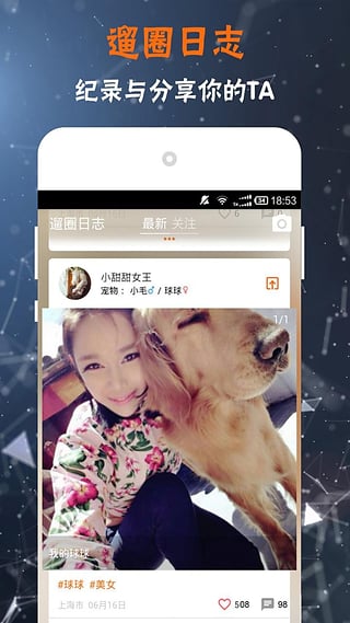 1.遛圈1.1.6發(fā)布啦!我們的界面全部進(jìn)行了更新,遛圈日志增加了萌寵秀欄目!
