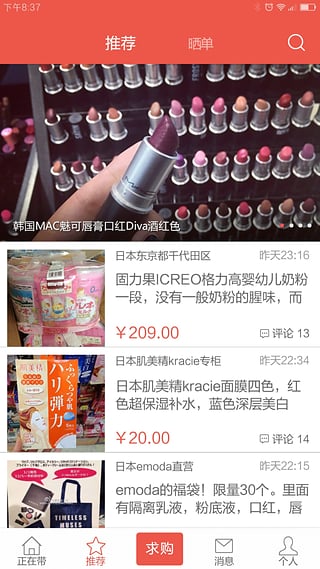 體驗(yàn)最真實(shí)的交友式海外血拼,旅行者實(shí)時(shí)自動(dòng)地理位置定位,買(mǎi)家更放心!帶手正在帶功能,旅行者實(shí)時(shí)上傳貨物價(jià)格、尺寸等,買(mǎi)家更省心!