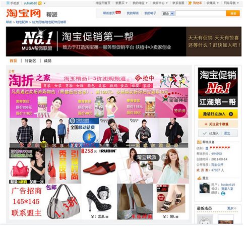 淘幫派是淘寶免費(fèi)提供給淘寶用戶使用的,可以發(fā)表文字、圖片等,對(duì)于新店來(lái)說(shuō),如果自己的幫派人氣旺,那么店鋪的流量也會(huì)驟升。而且,瀏覽淘幫派的網(wǎng)民都是淘寶用戶,有賣家也有買家,針對(duì)性強(qiáng)!所以,創(chuàng)建淘幫派是個(gè)很有效的免費(fèi)推廣方法。