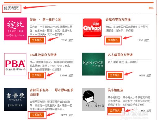 6、在幫派首頁(yè)的下面我們可以看到一些優(yōu)秀的幫派,我們可以點(diǎn)擊“立即加入”加入到自己喜歡的幫派中了