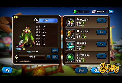 裝備:鋼刀雙臂 碧玉罩甲 冰蟬翼 生命靈珠