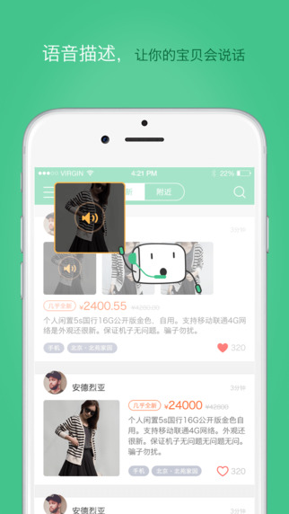 內(nèi)置聊天、定位,語(yǔ)音描述寶貝詳情等功能系統(tǒng),營(yíng)造豐富的社交功能及二手交易趣味。