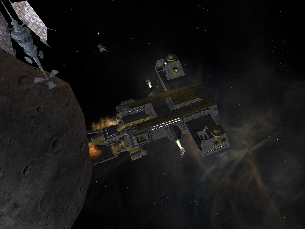 再次令我們失望的是,Quintaine教授也突然失蹤了。好在他的飛行員Vance還在,我們僅用幾瓶酒和虛構(gòu)的資助計(jì)劃就從他那兒套出了線索:去Omega3星系找Sinclair博士,她是Quintaine教授的助手,很可能知道教授的行蹤,而且Rheinland的人也在當(dāng)天向他問了同樣的問題。我們馬上起程,經(jīng)過Norfolk戰(zhàn)列艦和傳送門抵達(dá)Omega3星系,再輾轉(zhuǎn)由一號(hào)自由港飛往Sprague星球。一路上Bretonia星系的備戰(zhàn)令人真切地感受到我們與Rheinland的緊張關(guān)系。星空中突然出現(xiàn)4架Rheinland戰(zhàn)機(jī),這群家伙的戰(zhàn)斗力似乎更強(qiáng)了,我們好不容易才將它們打發(fā)掉,如愿趕在敵人之前在Sprague星球找到了Sinclair博士。沒等她仔細(xì)觀察那顆水晶,大群Rheinland戰(zhàn)機(jī)就已經(jīng)發(fā)動(dòng)攻擊了。我們急忙升空作戰(zhàn),但敵機(jī)實(shí)在太強(qiáng)。根據(jù)Sinclair博士的指引,我們逃往附近的Nebula研究站。立足未穩(wěn),又聞警報(bào),這回已經(jīng)無路可退,必須應(yīng)戰(zhàn)。苦戰(zhàn)殲滅眾敵,由跳躍洞回到Cambridge星系。我們偷偷在隕石陣中飛行,突然兩艘隱形的Rheinland戰(zhàn)機(jī)在隕石堆中出現(xiàn)。剛要開火,對(duì)方說是來給忠告的,告知前方星球已經(jīng)布滿了Rheinland的艦隊(duì),去了就是死。我和Sinclair博士半信半疑,但朱妮相信了他們。于是跟隨這兩艘陌生的戰(zhàn)機(jī)飛行,快到傳送洞時(shí),卻發(fā)現(xiàn)那兒守著Rheinland的Wotan戰(zhàn)列艦!