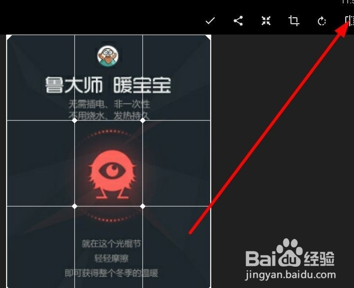 然后,這張圖片就打開了,如果不好看我們這里可以刪除圖片!我們先要點一下圖上的位置!箭頭所指的地方就是了!