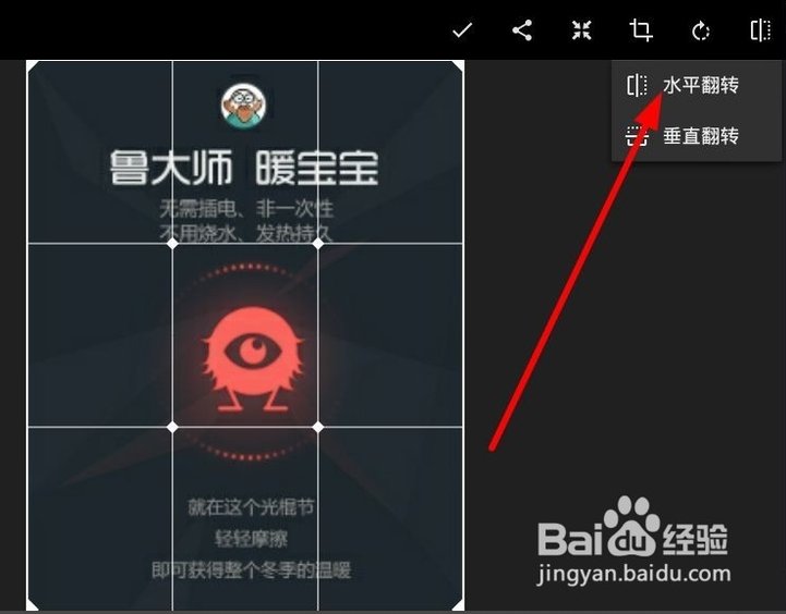 然后,這里可以讓圖片進行翻轉(zhuǎn),我們可以點一下水平翻轉(zhuǎn)這樣,看看我們的圖片是不是變了呢!這個根據(jù)我們的需要選擇了。