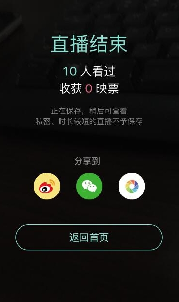 4、在直播界面點(diǎn)擊右下角的“X“按鈕即可結(jié)束直播喲,結(jié)束直播后還可以知道你收獲多少映票。