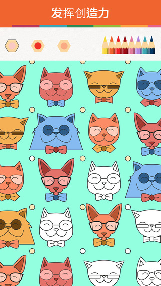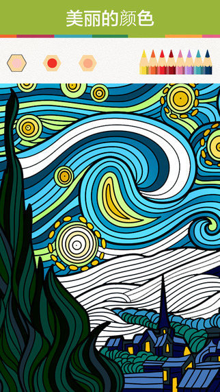 Colorfyapp給圖案上色相當于二次創(chuàng)作,一幅黑白色的圖案隨著各種顏色的添加會變的相當有魔力,另外填充不同的顏色所呈現(xiàn)的效果各異,激發(fā)大家給作品上色的動力。為了照顧小屏幕,Colorfy在上色時支持雙指縮放圖案、移動,方便你隨時給細節(jié)和局部填充。沒有畫筆,使用手指即可,右上角是顏色庫,有豐富的顏料可選,不過有些顏色需要付費購買,界面頂部有三個色板,可以快速調(diào)用不同的顏色。圖案中每一個封閉的圖形都被識別為一個單位,點擊即可實現(xiàn)填充,非常簡單,但是每一幅圖都是這些繁雜的圖形組成,所以你必須有足夠的耐心。