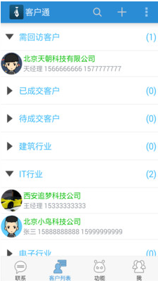 安卓平臺(tái)上最好用的掌上客戶關(guān)系管理軟件,讓您的客戶信息和手機(jī)通訊錄徹底分離,便于維護(hù)管理,客戶通適用于所有行業(yè)銷售人員、業(yè)務(wù)人員使用。