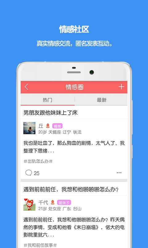 情感社區(qū):真實情感交流,匿名發(fā)表互動。