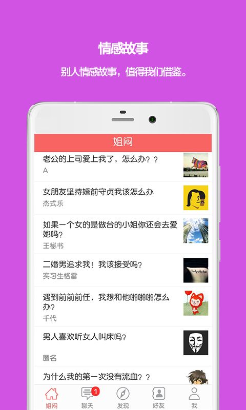 姐悶,婚戀情感交流平臺,解決婚戀成長過程的煩惱。