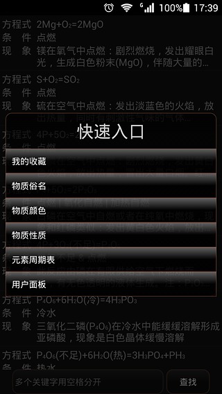 化學(xué)是一門很神奇的學(xué)科,我們生活中的方方面面都離不開化學(xué),化學(xué)的魅力之處在于她能夠解釋清楚我們所處環(huán)境中的各種現(xiàn)象與本質(zhì)。本軟件著眼點(diǎn)在課本,卻高于課本。軟件的精益求精也是我們一直奮斗的目標(biāo)。希望本軟件能夠一直伴隨同學(xué)們的學(xué)生生涯,給同學(xué)們帶來學(xué)習(xí)上的便利。我與你們一起,共同探索、共同進(jìn)步!【軟件特點(diǎn)】
