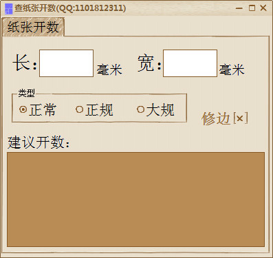 查紙張開數(shù)是一款打印的參考工具,小編覺得這款工具真的是打印的時(shí)候比較實(shí)用的一個(gè)工具,所以看到就給大家挖過來了。查紙張開數(shù)軟件內(nèi)部的開數(shù)表對(duì)普通常見的開數(shù)進(jìn)行優(yōu)化,結(jié)果更加準(zhǔn)確,很適合印刷切紙制版參考