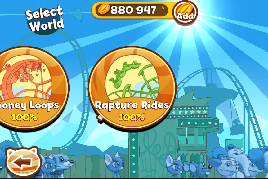 《動(dòng)物過(guò)山車》是一款卡通風(fēng)格的休閑游戲,由育碧公司推出。該游以過(guò)山車為主題,玩家需要用重力感應(yīng)來(lái)控制過(guò)山車的速度,使其能夠安全運(yùn)行。車上的各類游戲客們分別為老鼠、貓、狗、豬、大象等動(dòng)物,它們各自擁有自身特技,可以幫助過(guò)山車在軌道上加速、收集、甚至飛行。
